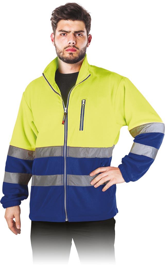 Bluza protectoare din polar cu dungi reflectorizante pentru siguranță crescută.