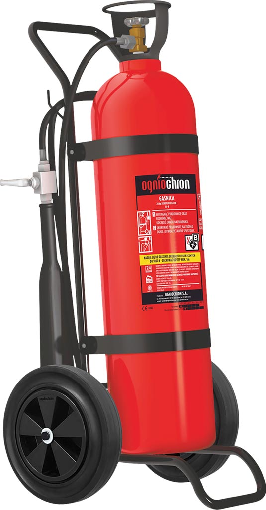 Extinctorul portabil cu dioxid de carbon oferă o soluție eficientă și ușor de utilizat pentru stingerea incendiilor în diverse medii industriale. Rezervorul său fără sudură, presat adânc și acoperit cu un strat durabil de vopsea asigură durabilitate și rezistență în condiții dificile. Furtunul de cauciuc lung de 5 metri, dotat cu o duză specială, permite direcționarea precisă a fluxului agentului stingător, facilitând astfel intervenția rapidă și eficientă. Căruciorul ergonomic facilitează transportul extinctorului, asigurând mobilitate și acces imediat în situații de urgență. Extinctorul este proiectat pentru o operare simplă, garantând fiabilitate și performanță. Cu o eficiență la stingere de 89 B și un timp de funcționare de 18 secunde, este ideal pentru sectorul energetic, industria petrochimică și chimică, precum și pentru protecția spațiilor cu risc ridicat, cum ar fi depozitele de lichide și gaze inflamabile, cabinele de vopsit și halele industriale. Funcționează optim în spații închise și respectă toate normele europene de siguranță relevante.