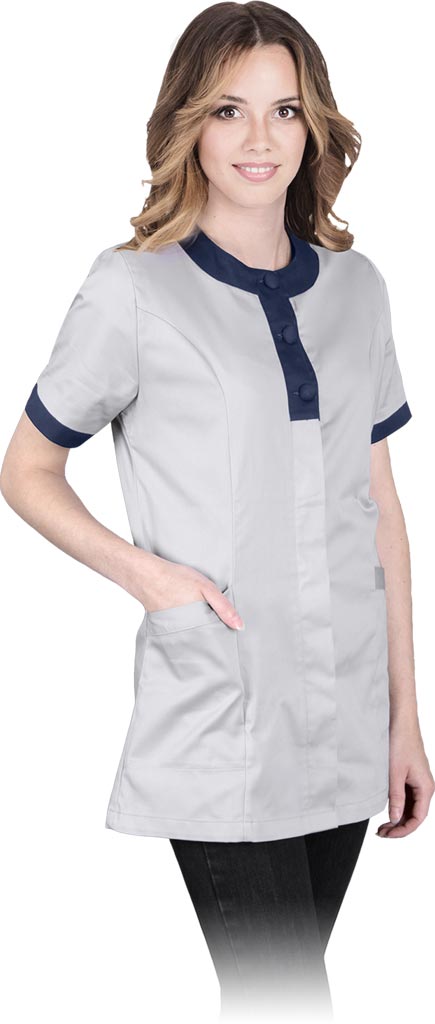 Halat protector pentru femei, cu mâneci scurte, conceput pentru confort și durabilitate într-un mediu de lucru activ.