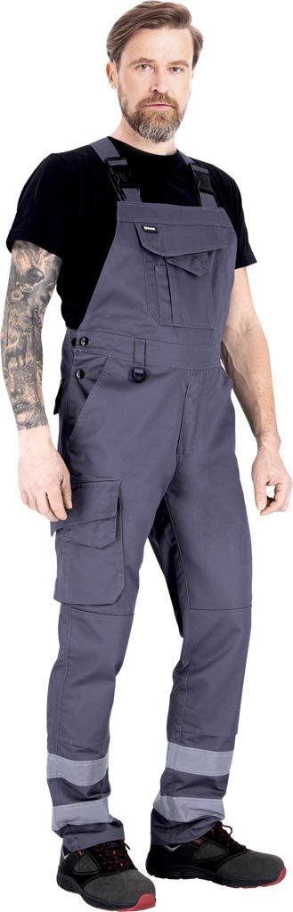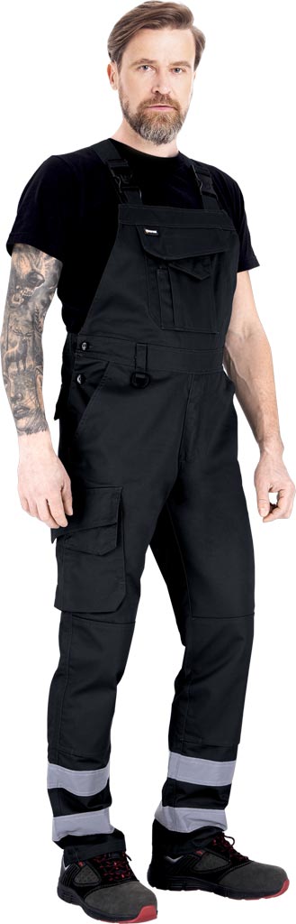 Pantalonii de protecție cu pieptar sunt echipați cu două benzi reflectorizante Vizlite, care asigură vizibilitate sporită și respectă standardul EN ISO 20471.