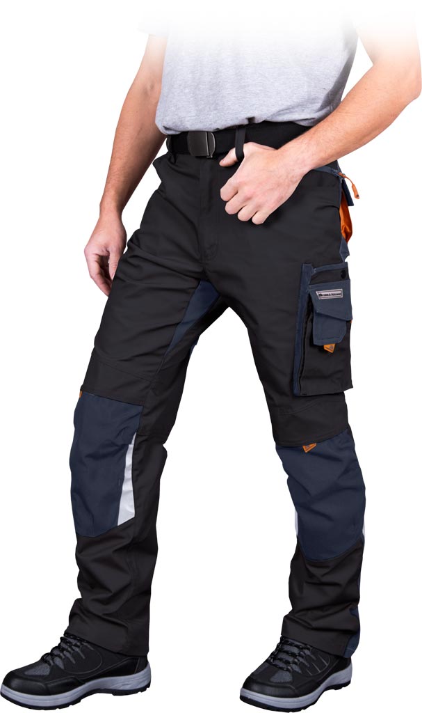 Designul modern și combinația de culori granat-negru-portocaliu fac acești pantaloni potriviți pentru orice mediu de lucru.