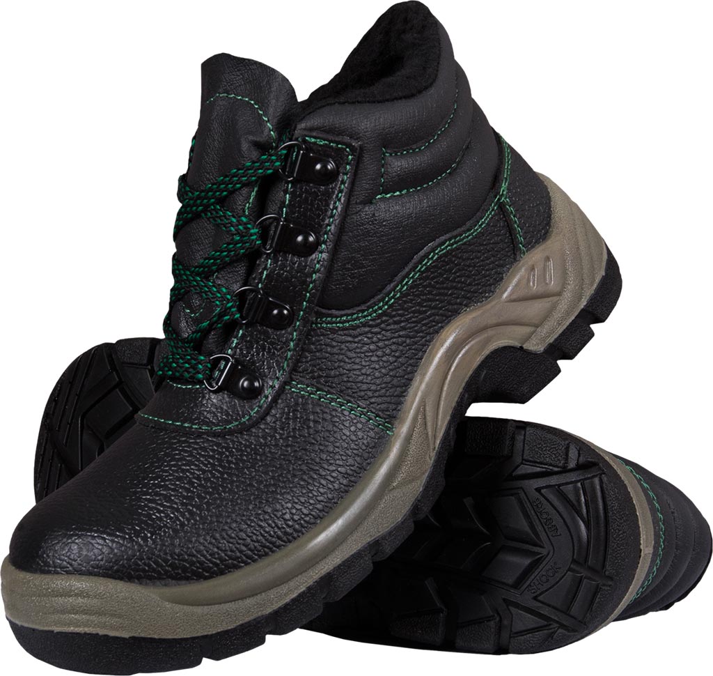 Pantofii de protecție căptușiți GRENLAND sunt realizați din piele de bovină de înaltă calitate, asigurând durabilitate și confort pe durata întregii zile de lucru. Modelul bocanc oferă acoperire completă a gleznei pentru protecție suplimentară. Sunt prevăzuți cu șireturi pentru ajustarea optimă a piciorului și o căptușeală interioară călduroasă cu blăniță, ideală pentru condiții reci. Talpa antiderapantă, fabricată din poliuretan dublu dens, este rezistentă la ulei și temperaturi scăzute, garantând stabilitate și siguranță pe orice suprafață. Absorbția șocurilor sub călcâi reduce oboseala și protejează articulațiile. Protecția metalică rezistentă la impact și compresiune oferă un nivel ridicat de siguranță conform categoriei SB E FO CI SRC și normelor europene EN20345 și EN20344.