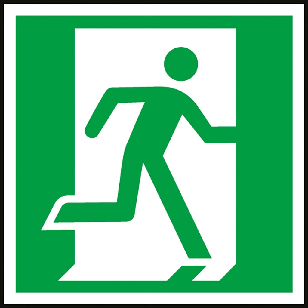 Semn de evacuare „Ușă de evacuare” (spre dreapta).