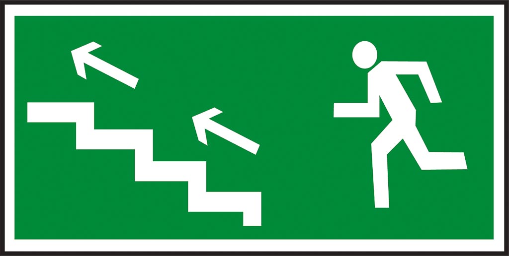 Semn de evacuare „Direcția spre ieșirea traseului de evacuare prin scări în sus”