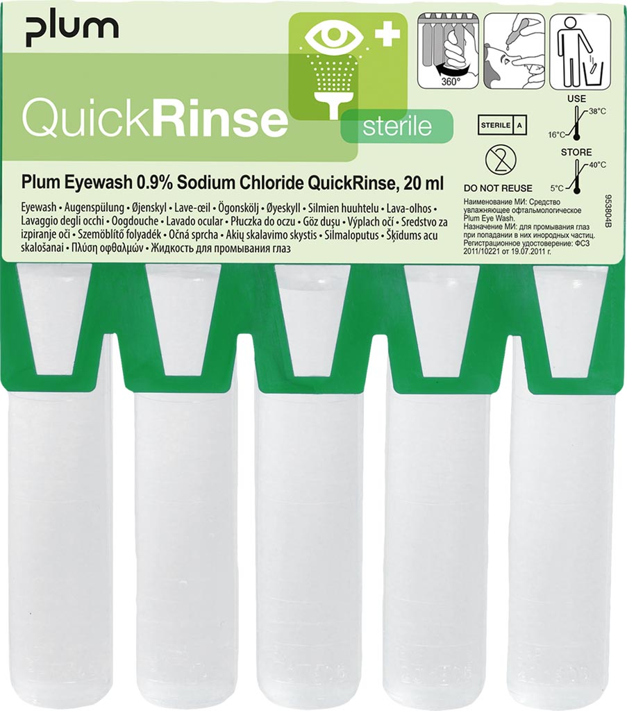Soluția pentru clătirea ochilor Eye Wash este special concepută pentru a ajuta la îndepărtarea rapidă și eficientă a particulelor de praf, murdărie sau alte corpuri străine solide care pot irita ochii. Formula cu 0,9% clorură de sodiu asigură o curățare delicată, oferind o alinare imediată și reducând senzația de uscăciune oculară. Fiecare utilizare implică un timp de clătire de 2 minute, suficient pentru a proteja ochii și a preveni disconfortul. Soluția poate fi folosită individual sau ca parte a unui sistem complet de prim-ajutor, fiind compatibilă cu stațiile QuickSafe Complete și Pull1Aid. Ambalajul conține 5 fiole de 20 ml, ideale pentru a fi purtate oriunde este nevoie de o intervenție rapidă pentru sănătatea ochilor.